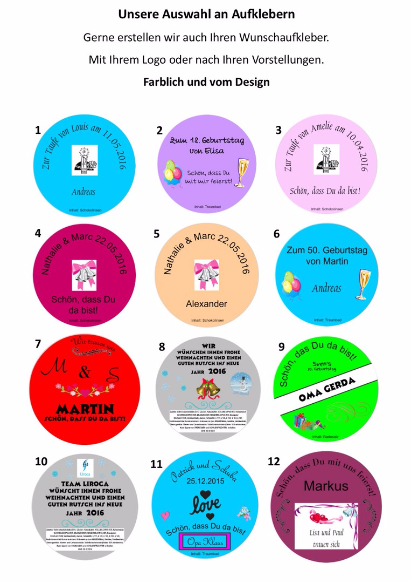 Suchen Sie sich gerne einen Aufkleber aus oder stellen Sie mit uns einen eigenen zusammen.