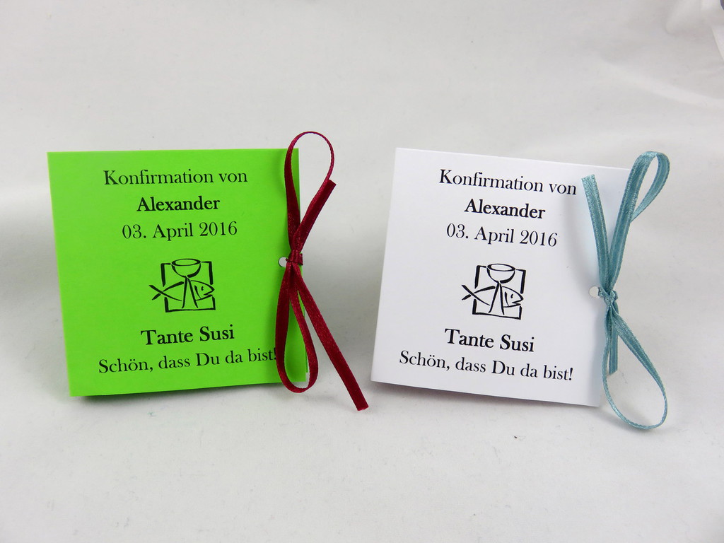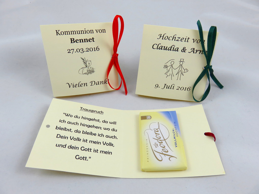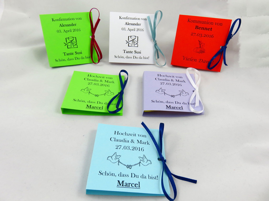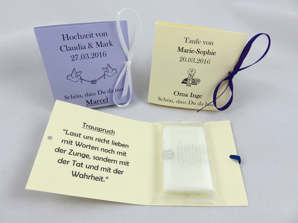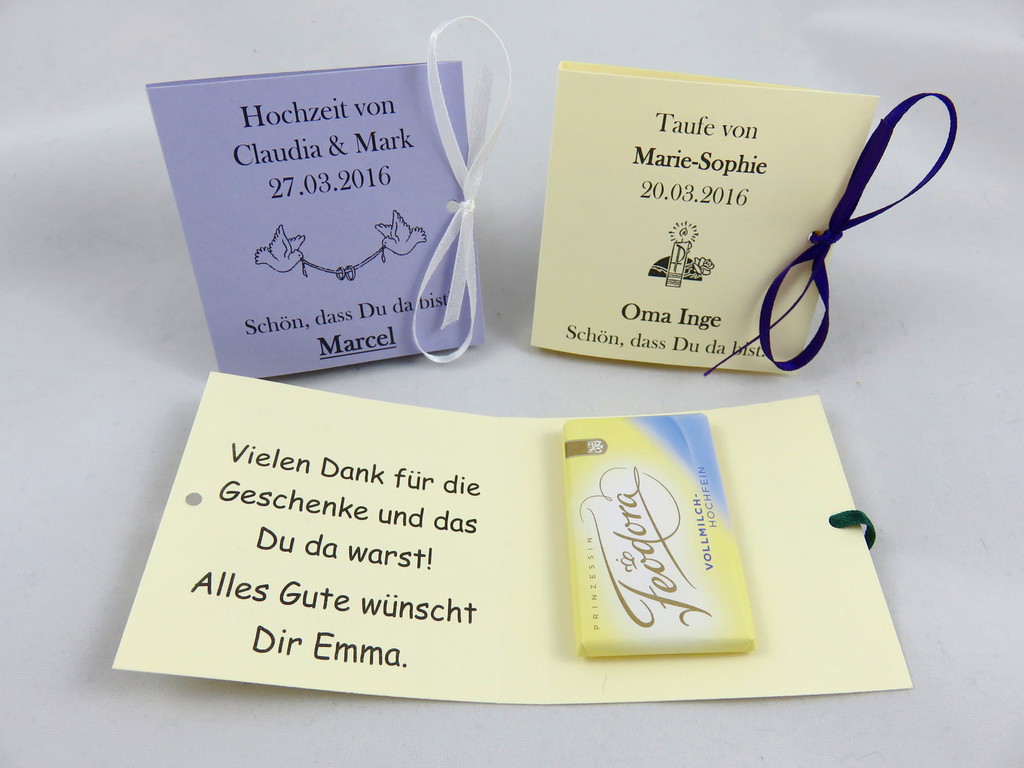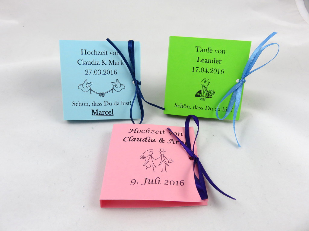 Ein günstiges dennoch hübsches Gastgeschenk. Die Innenseite kann noch genutzt werden für den Taufspruch, Hochzeitssong oder ein persönliches Gedicht.