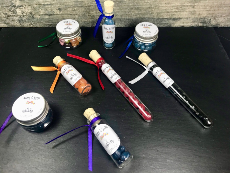Alle Preise als fertiges Gastgeschenke inklusive MwSt. Personalisierung und Satinband + Versand