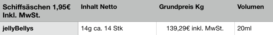 Grundpreisangabe, Netto Gewicht, Volumen