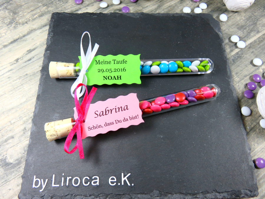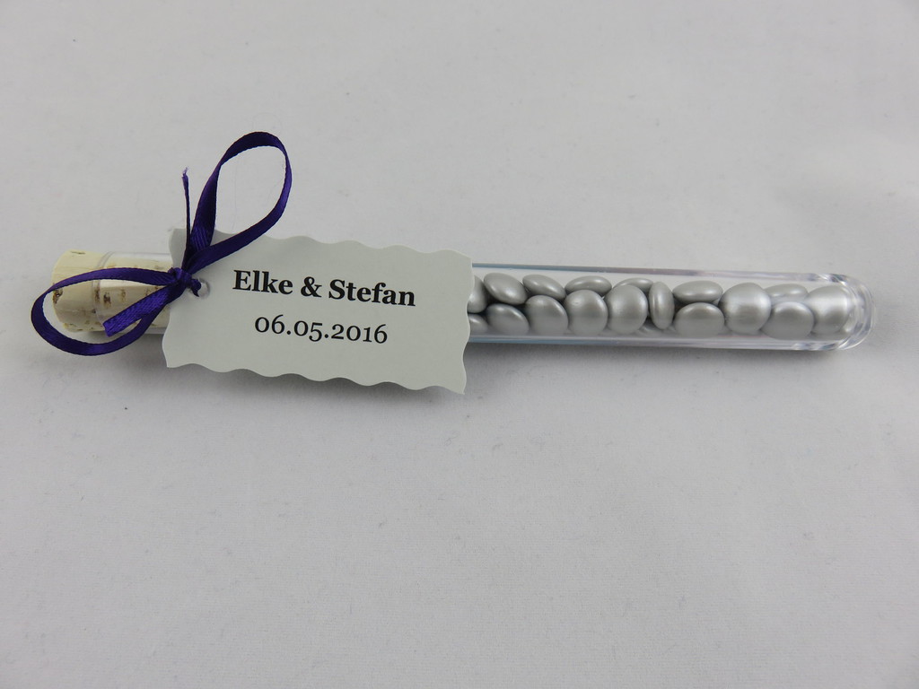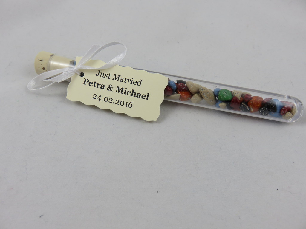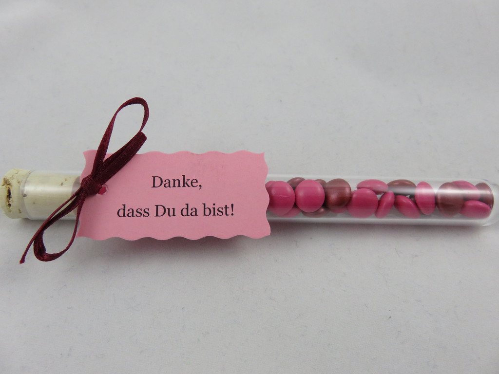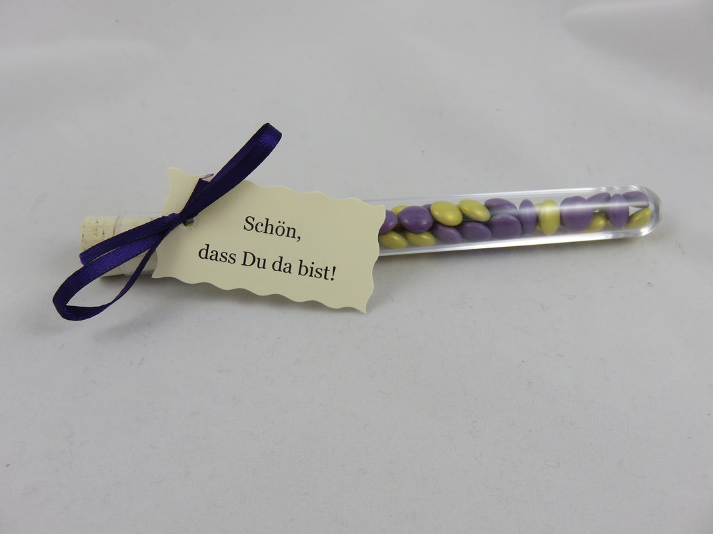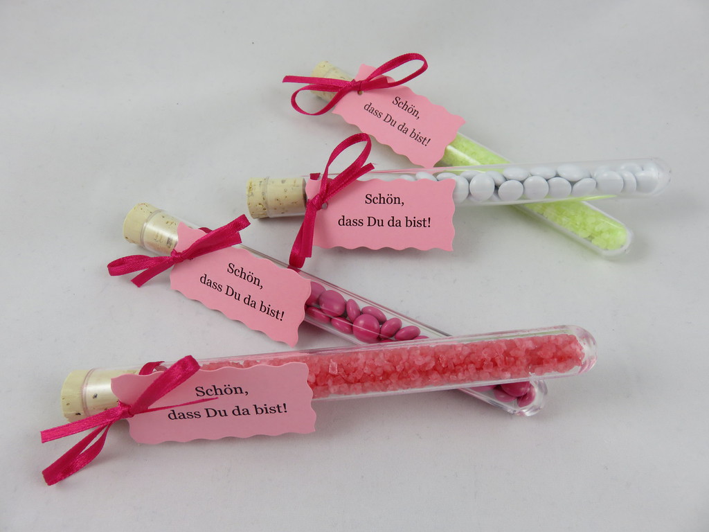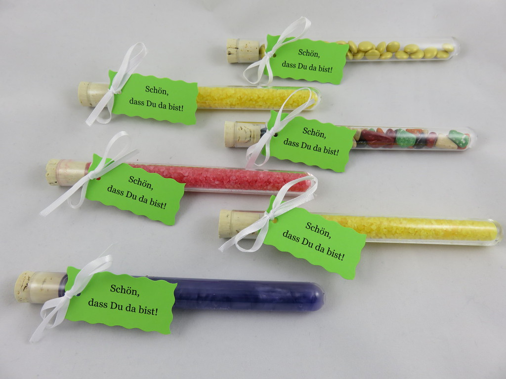 Das perfekte Gastgeschenk "mal anders" für jeglichen Anlass sind unsere Reagenzgläser aus Kunststoff (Polystrol). Fertig gefüllt, dekoriert und auf Wunsch personalisiert.