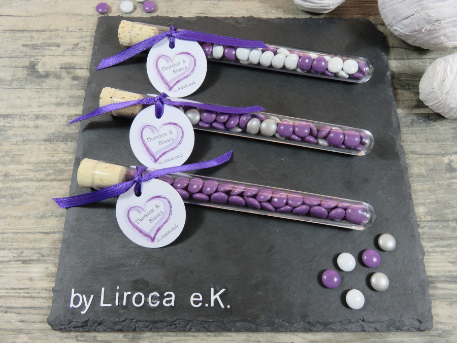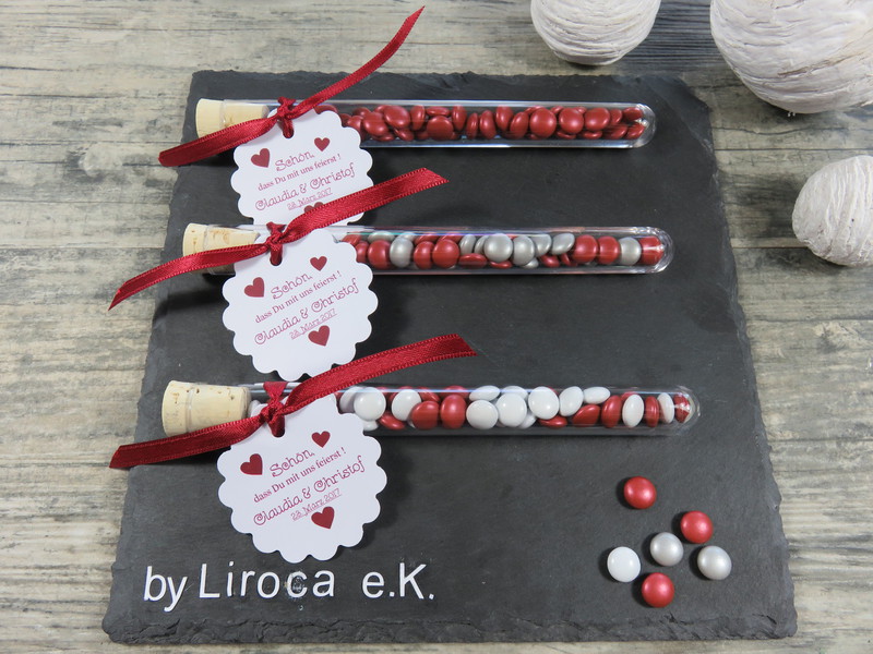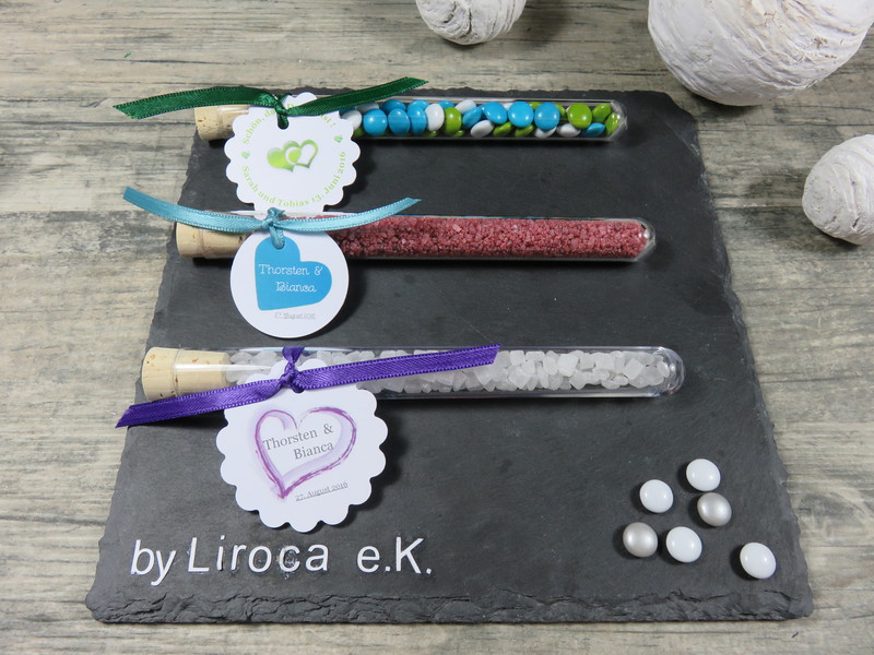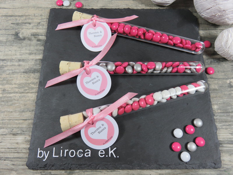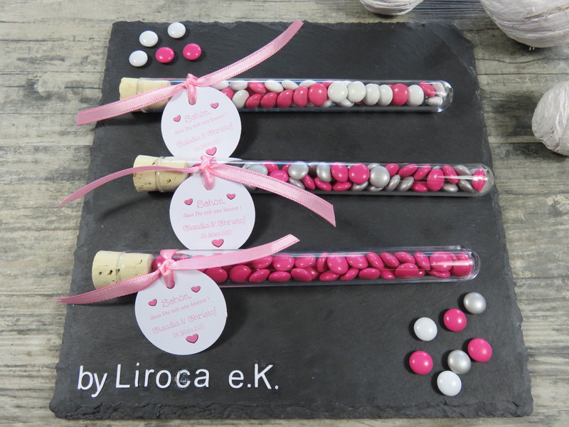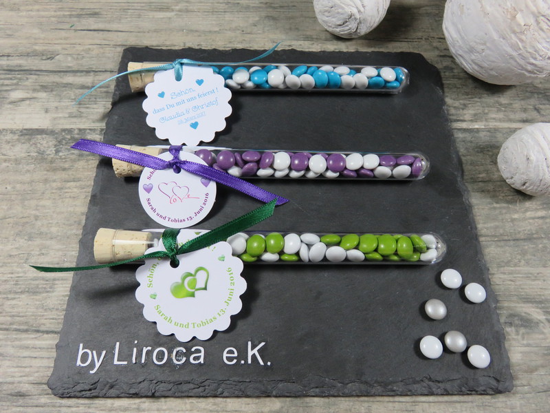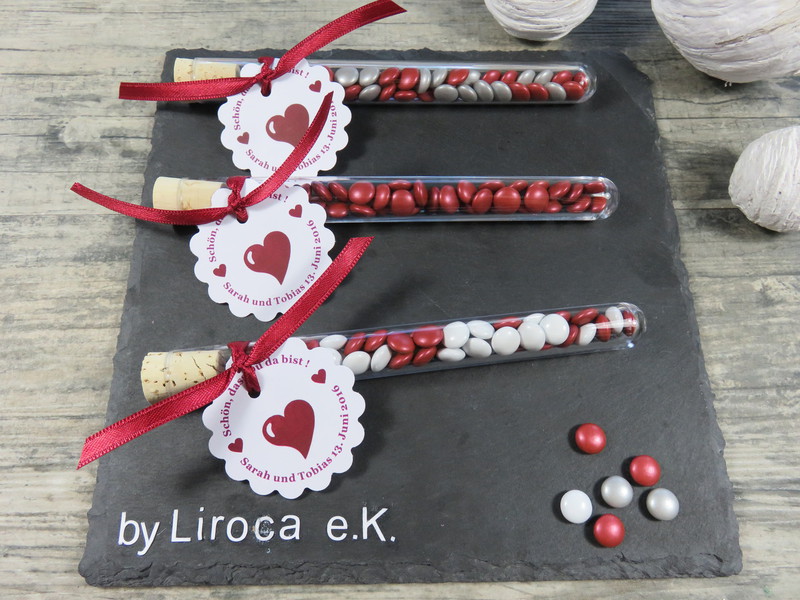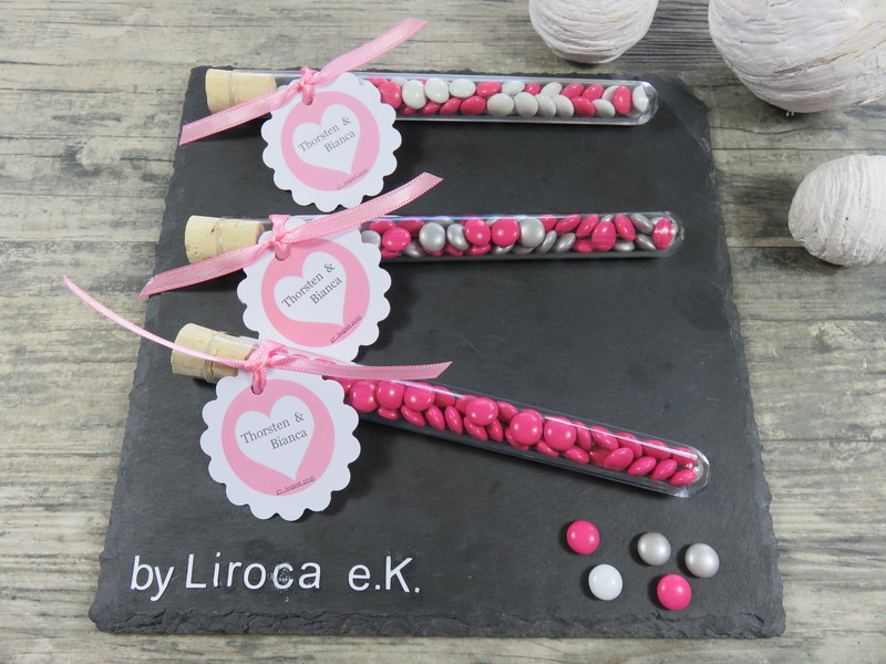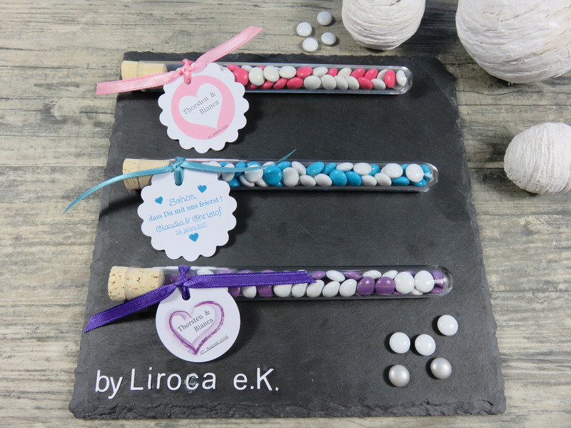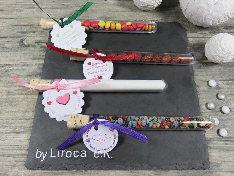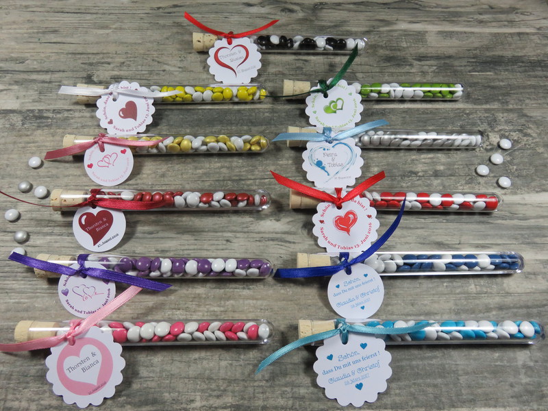 Stellen Sie sich Ihre Gastgeschenke selber zusammen. Wir bedrucken Ihnen die Anhänger ohne jeglichen Aufpreis. Egal welche Füllung, Satinband, Anhänger oder Druck,
