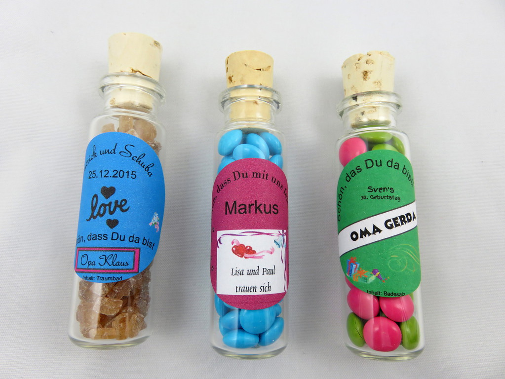 Sie erhalten Ihre Gastgeschenke mit einem Wunschaufkleber
